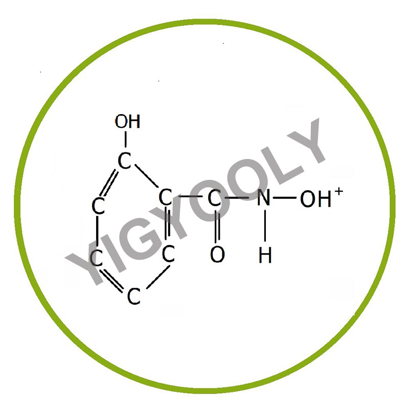 YIGYOOLY Salicyl Acidum hydroximicum stabilium chelates cum metallis formare potest, ut stanno, tungsten, raras terras, cuprum et ferrum, dum instabiles chelates cum alcali terra et alcali metallis efformant. Ergo salicylhydroxamic acidum selectivity bonum habet. Praesertim cum acidum salicylicum hydroxamicum cum cassiterite chelates, varias formas salium complexorum externorum non solum formare potest, sed etiam compositiones varias salium complexorum internorum formare. Ergo acidum salicylicum hydroxamic fortem selectivity for tin. The toxicity of YIGYOOLY acidum salicyl hydroxamicum humile est, decima sexta illius acidi benzylarsonici, cuius applicatio multum emendare potest quaestiones tutelae environmental. YIGYOOLY Salicyl acidum hydroximicum usum humilem et validum applicabilitatem habet in fodienda processus, et altam promotionem et applicationem pretii habet.